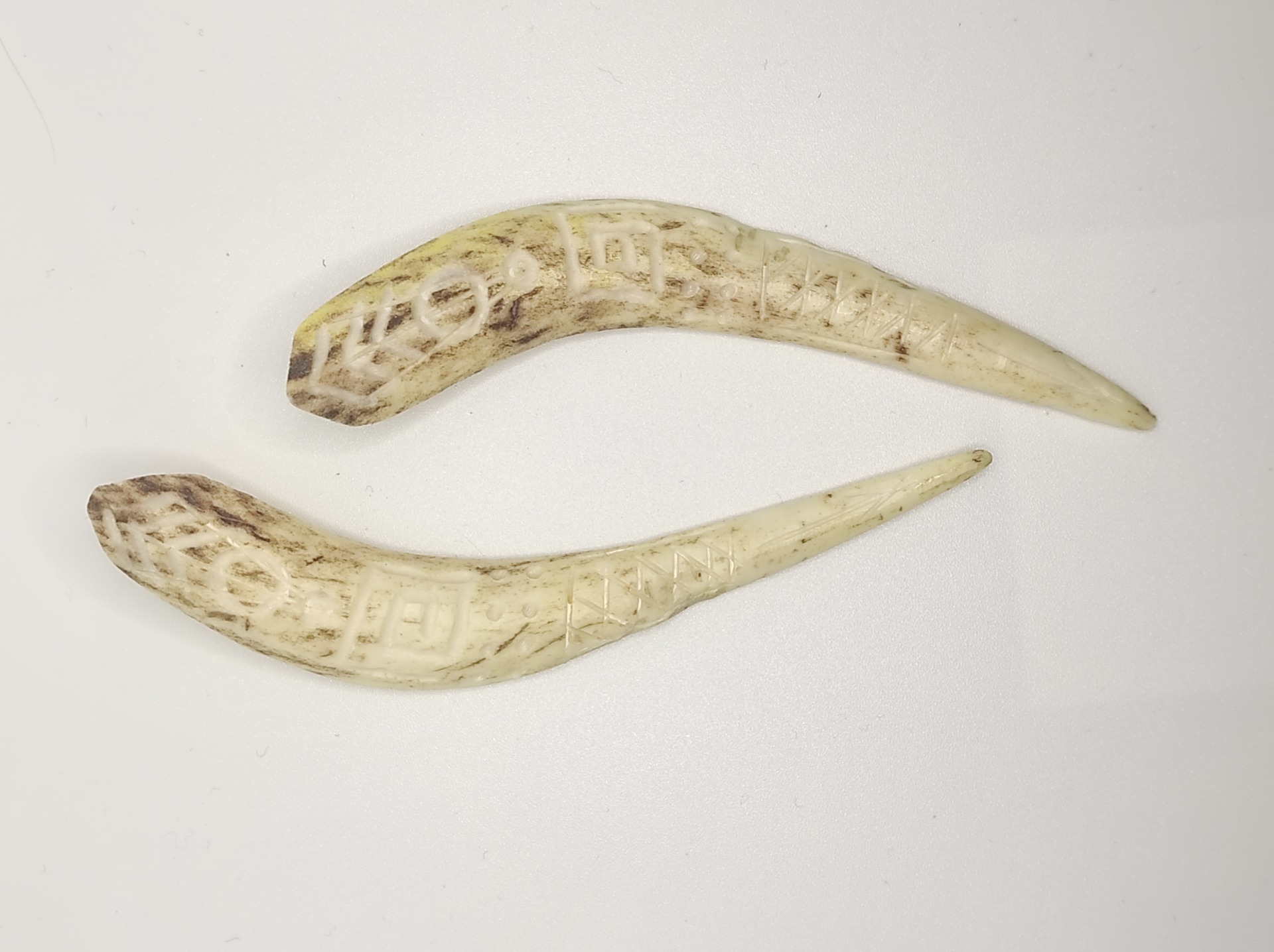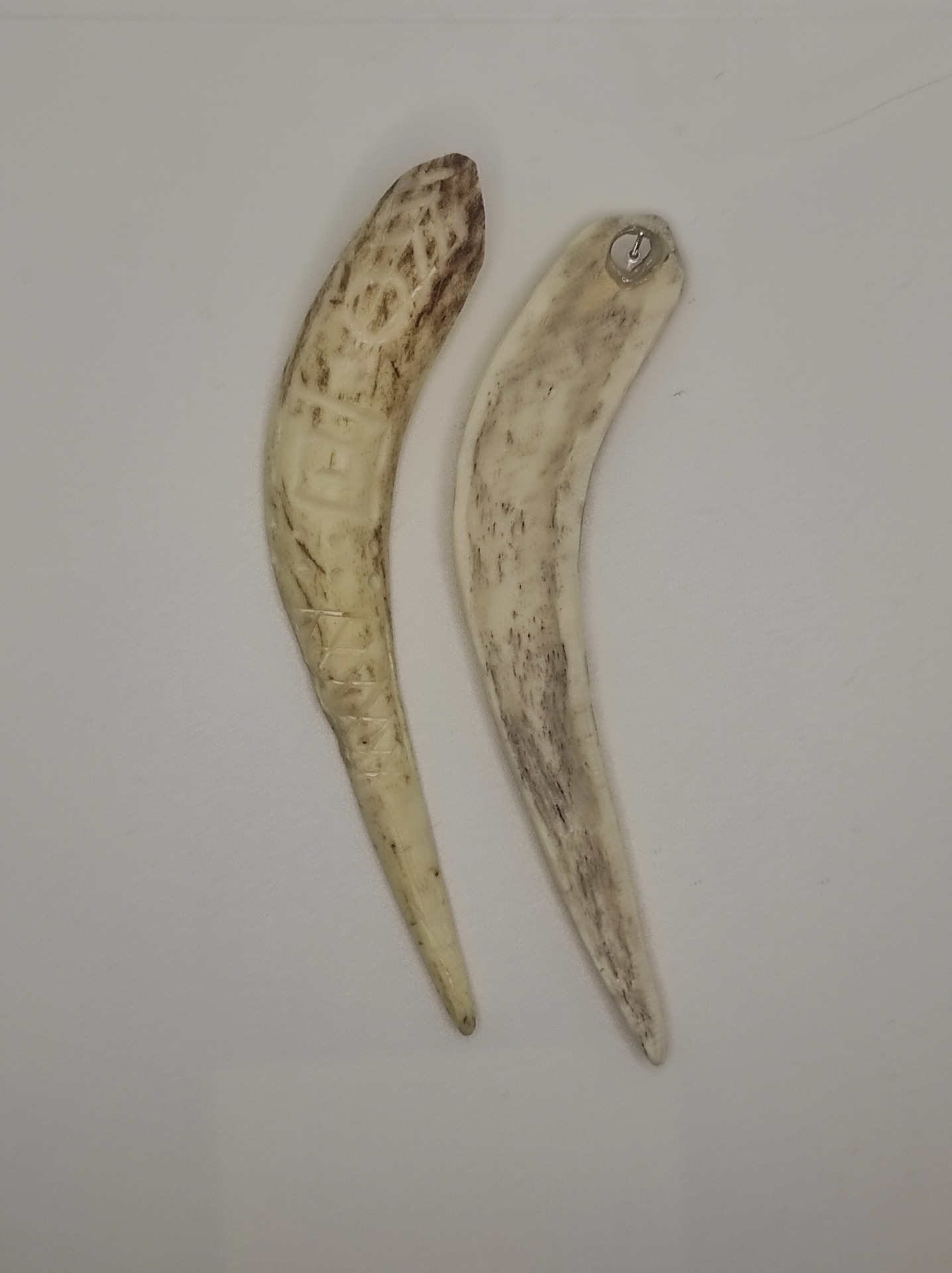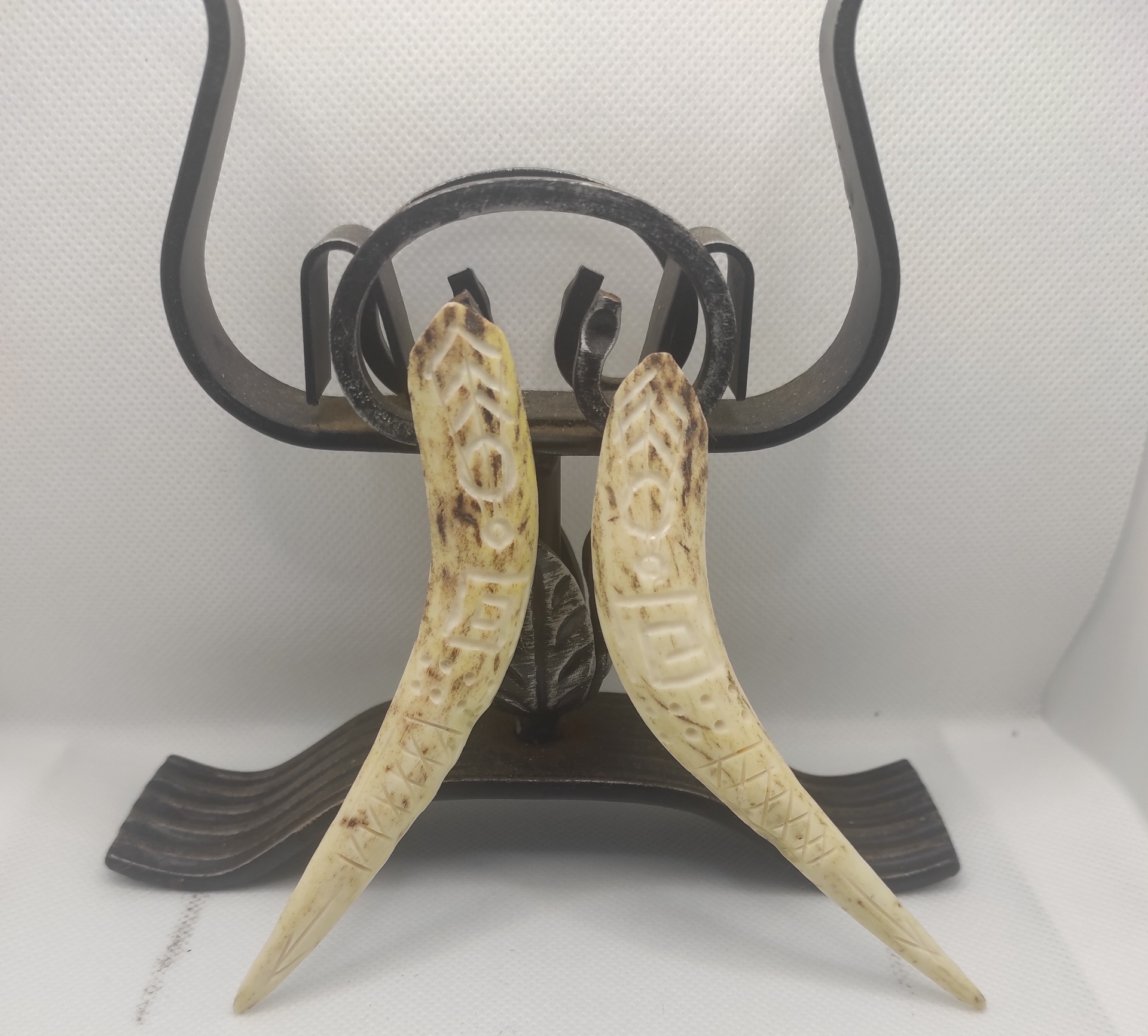 Cercei sculptați în corn de cerb.