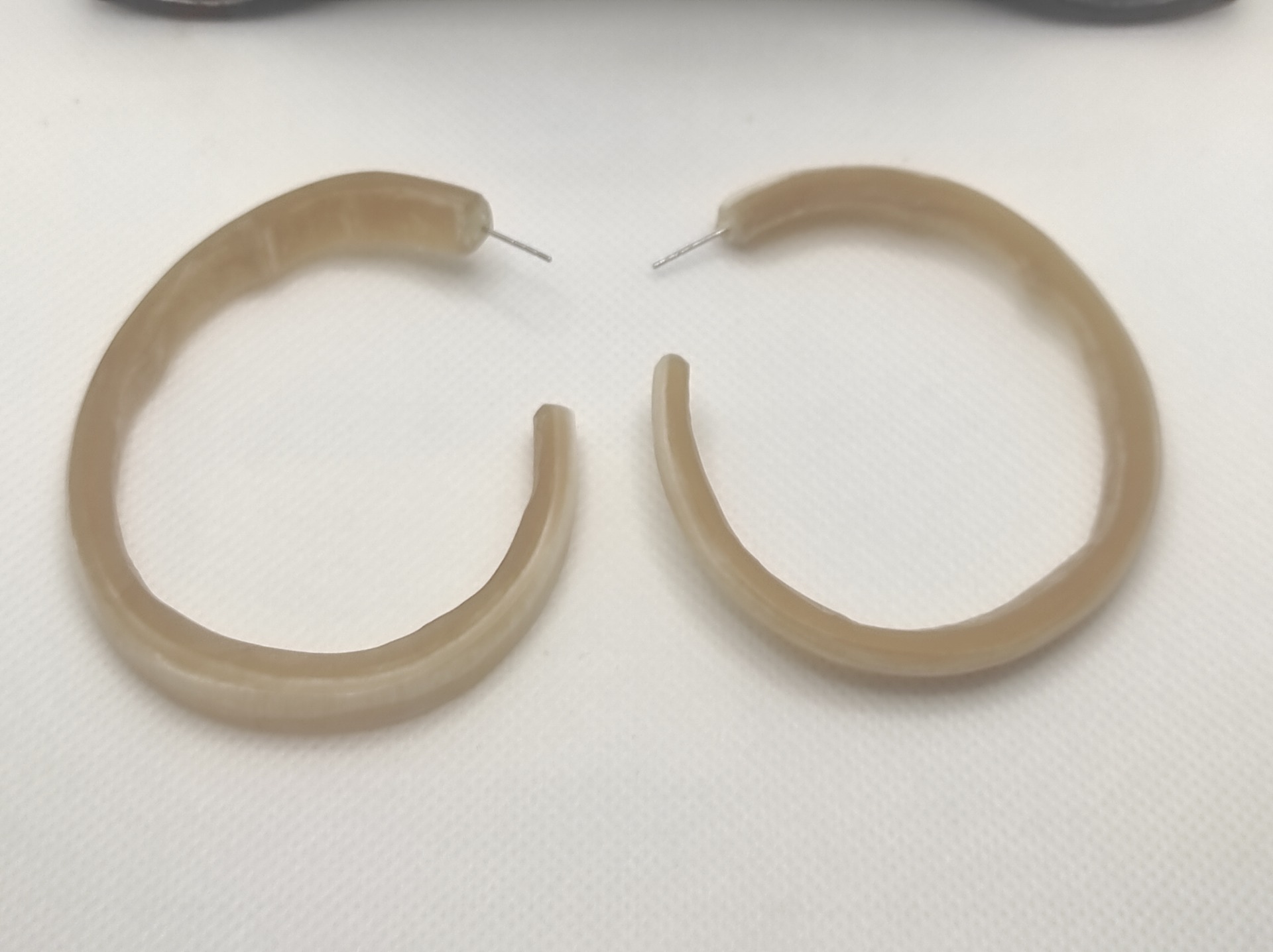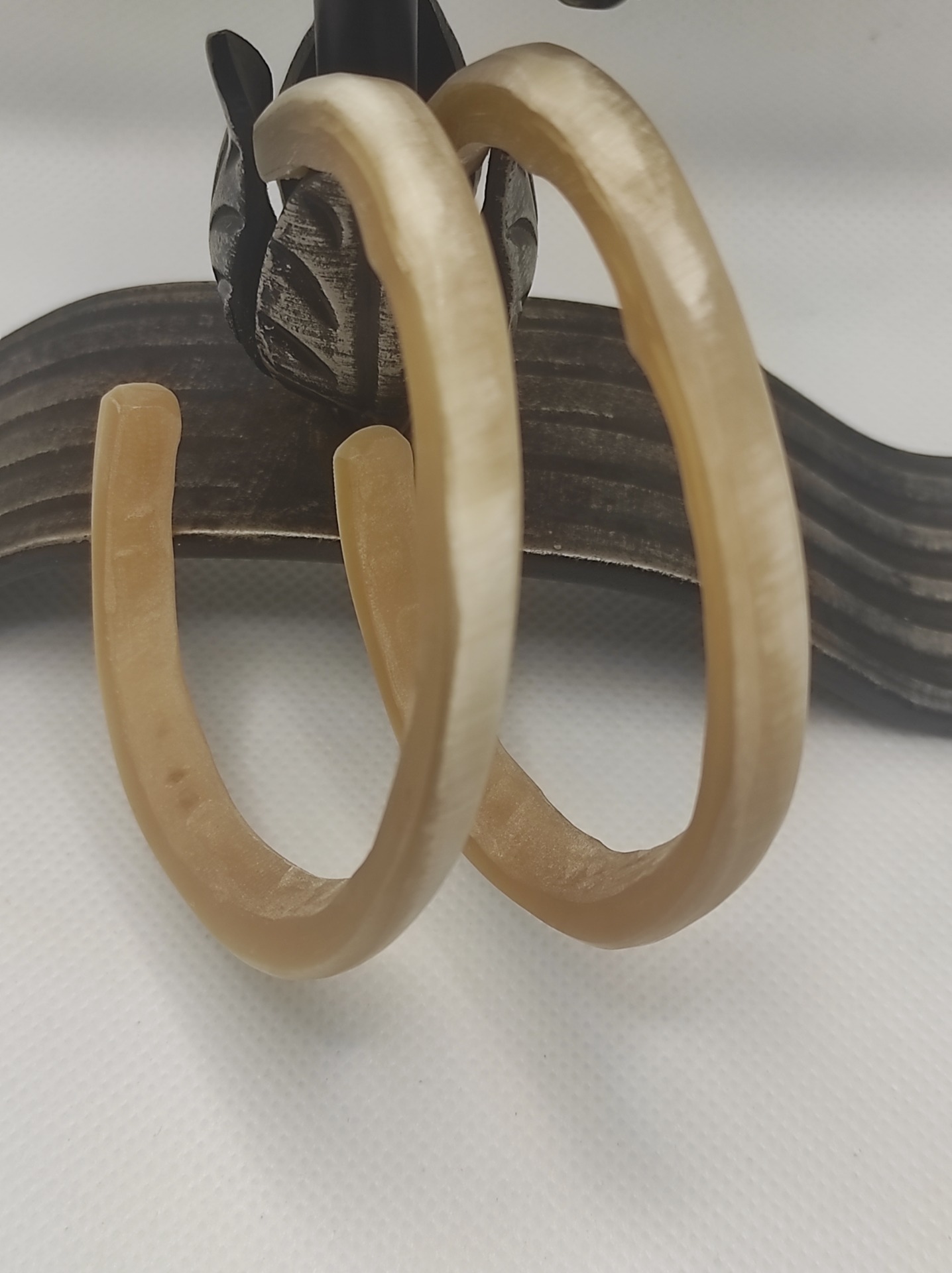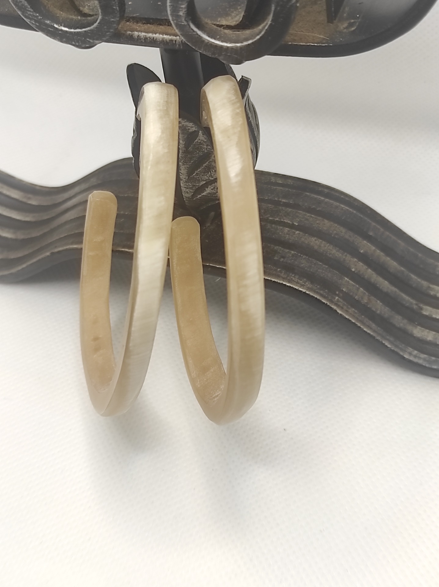 Cercei sculptați în corn de vită.