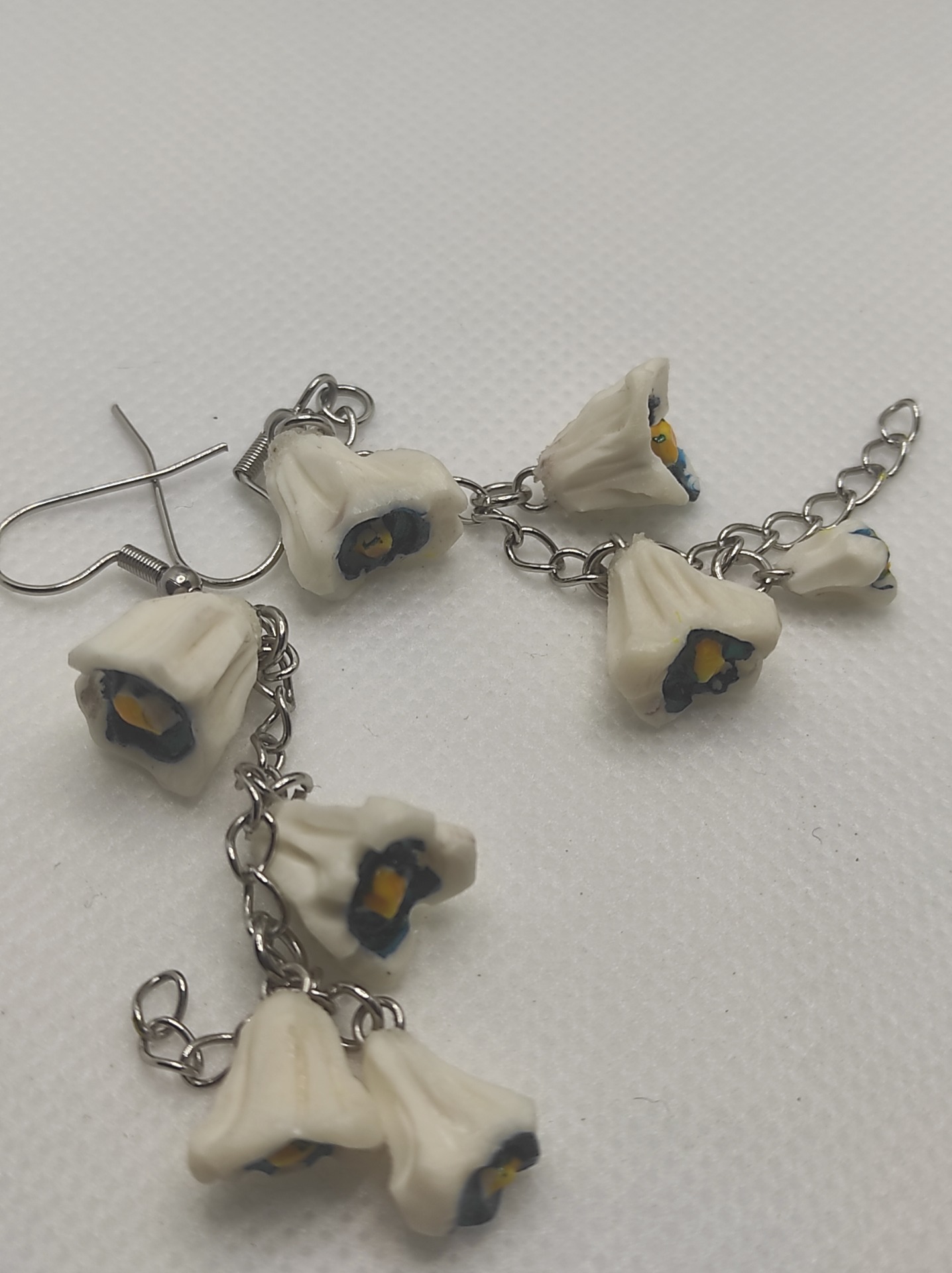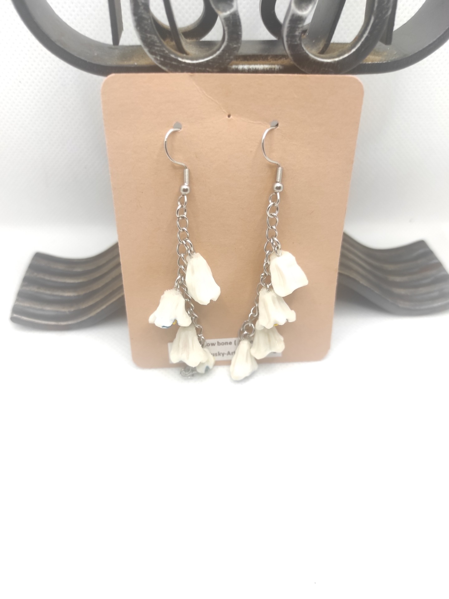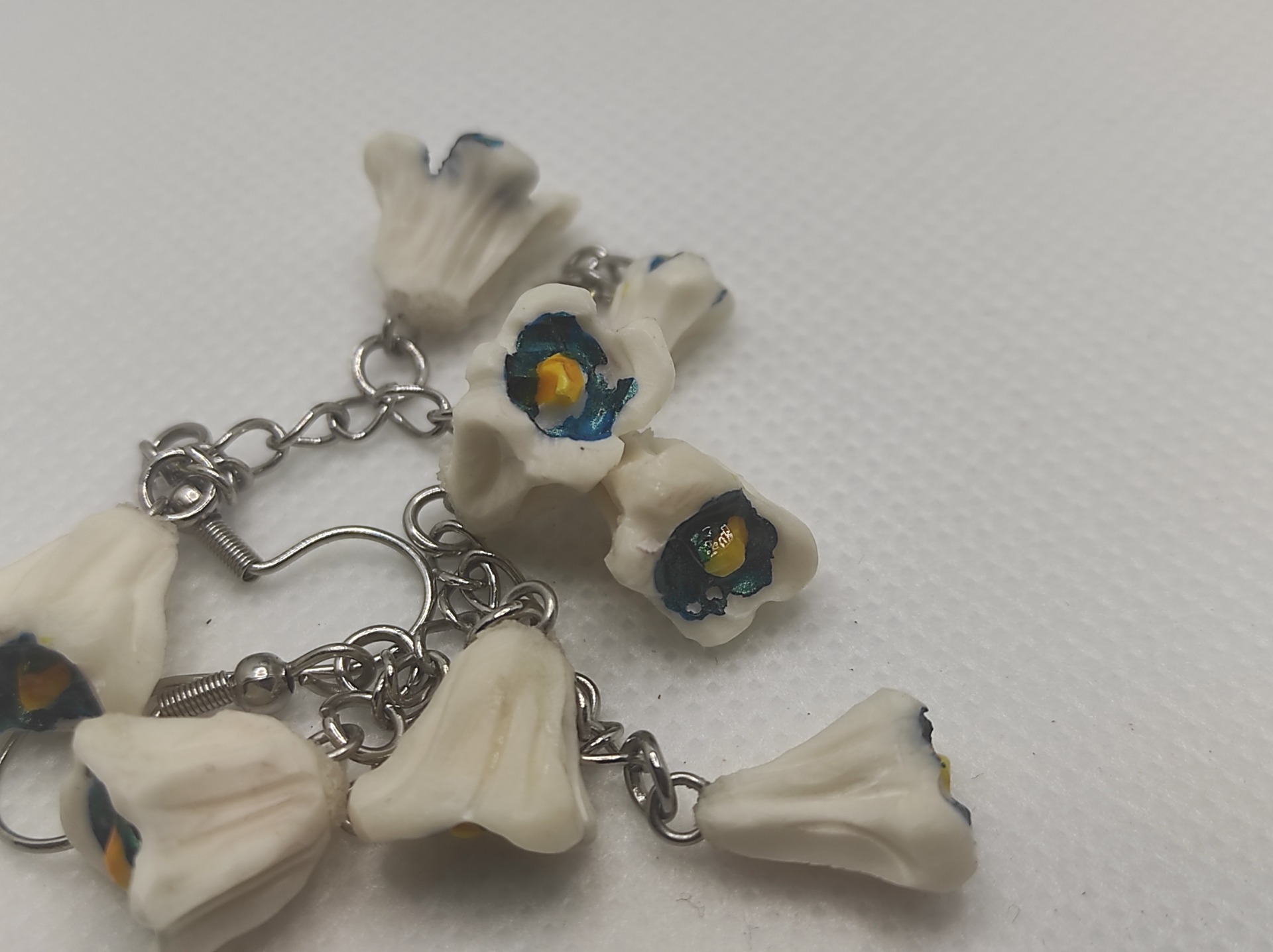 Cercei sculptați sub forma de flori ( lacrimioare ), pe lanț din oțel inoxidabil.